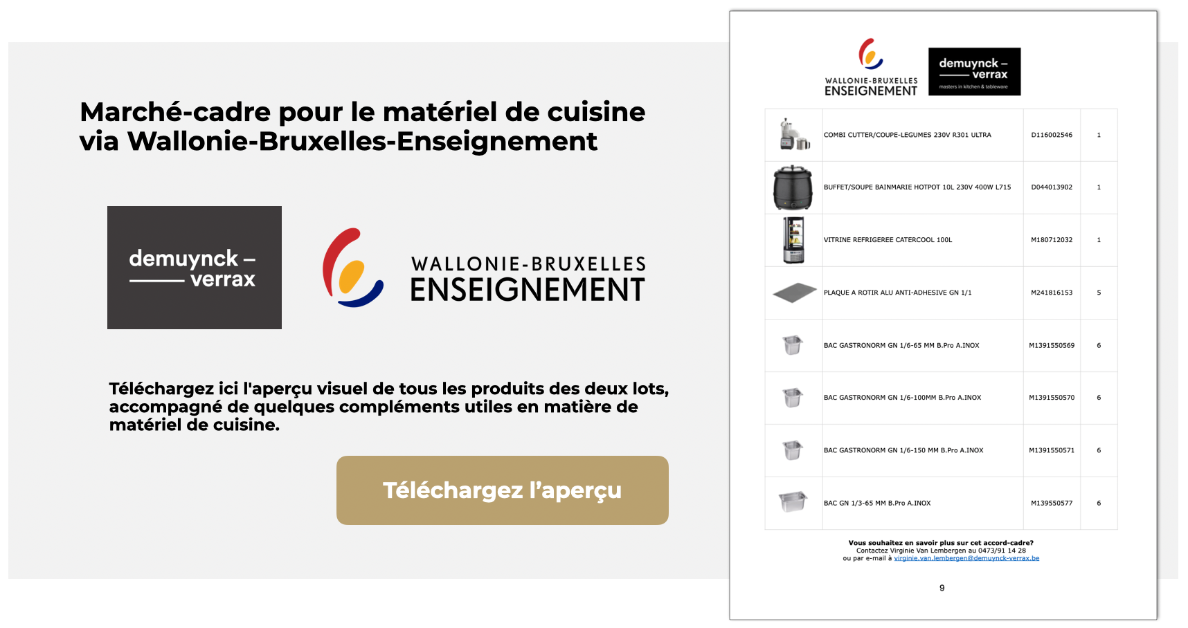 Demuynck-Verrax propose une large gamme de produits de qualité aux écoles et aux traiteurs qui fournissent des repas scolaires. Tant pour le réfectoire que pour la salle du personnel.